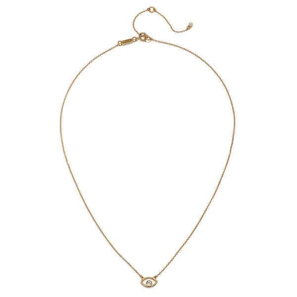 Das schützende Auge immer dabei. Diese wunderschöne goldene Kette von SATYA Jewels mit weißen Topas als Anhänger könnte Ihr täglicher Glücksbringer sein.